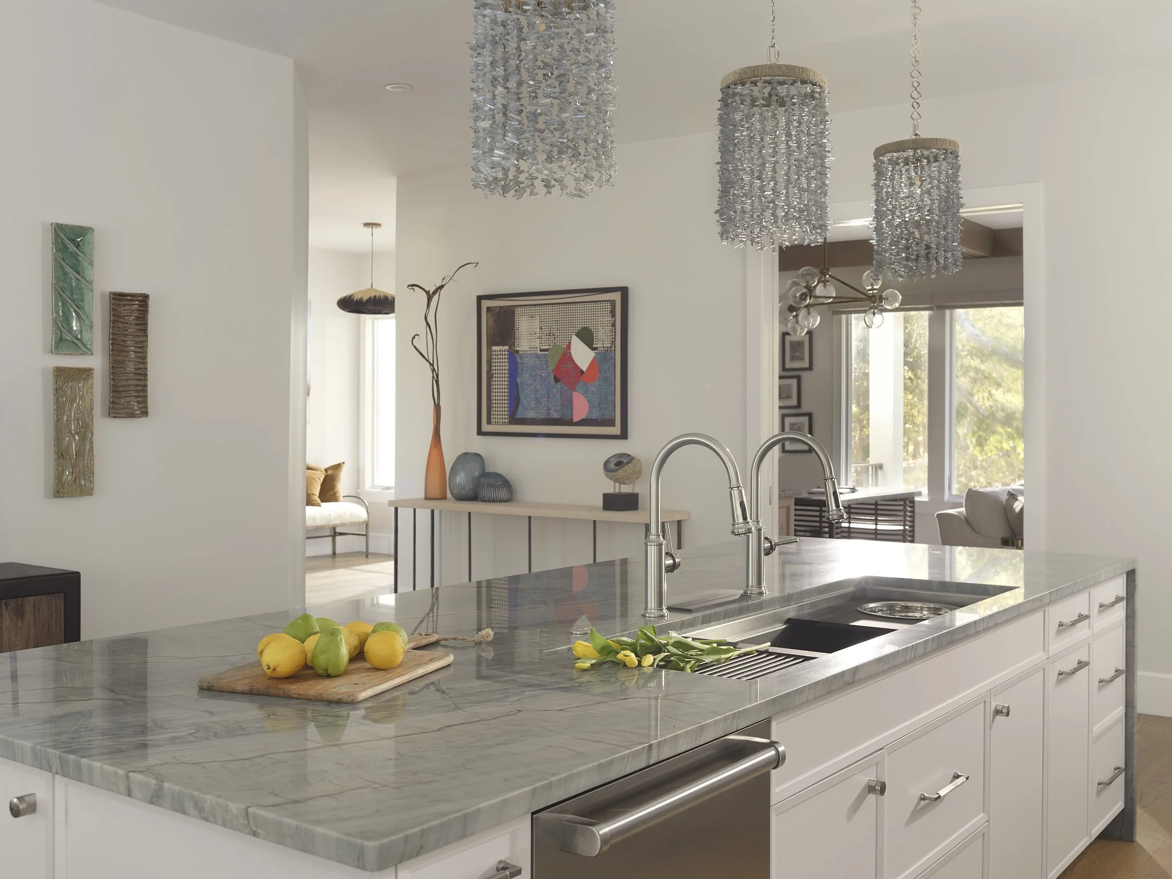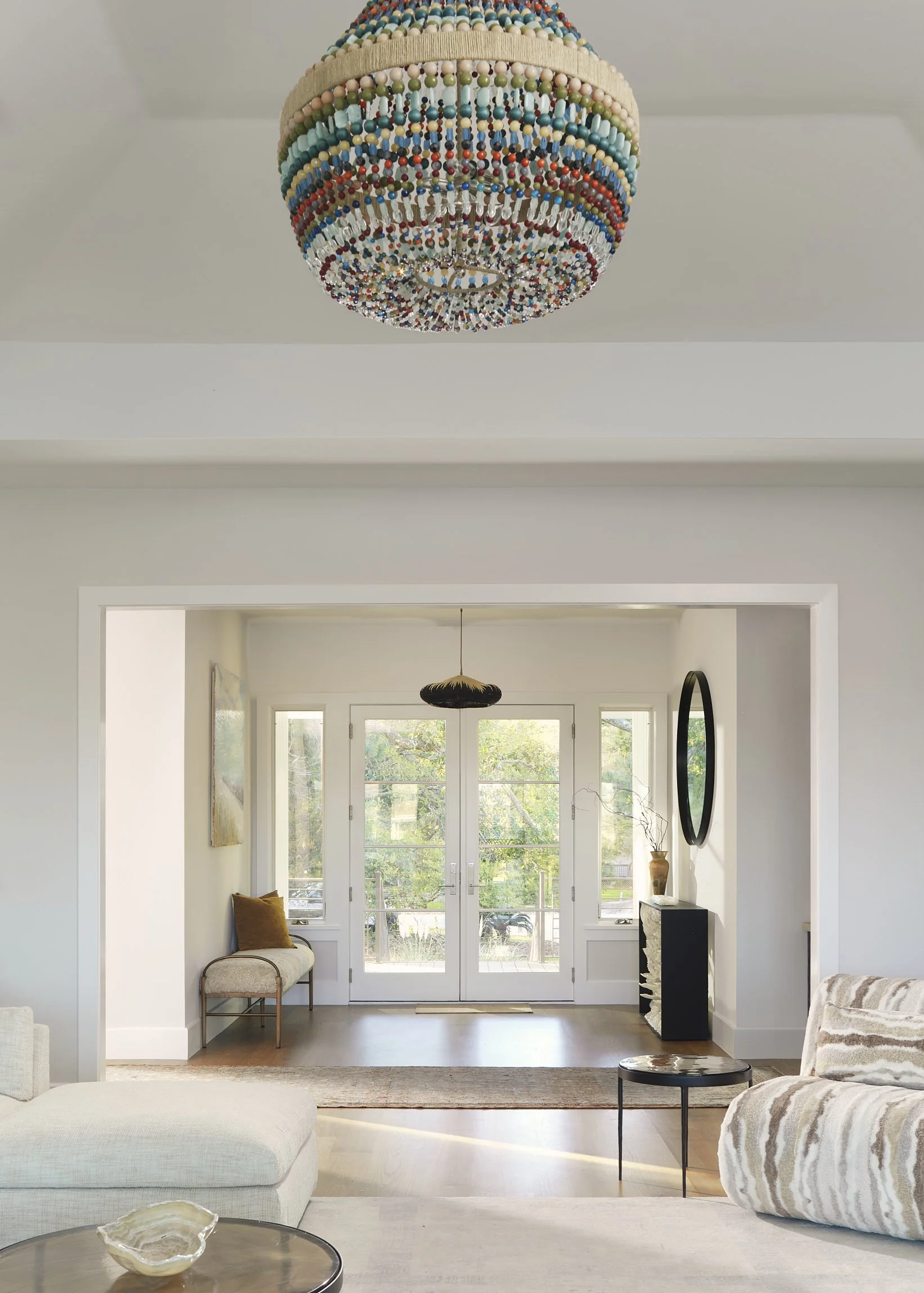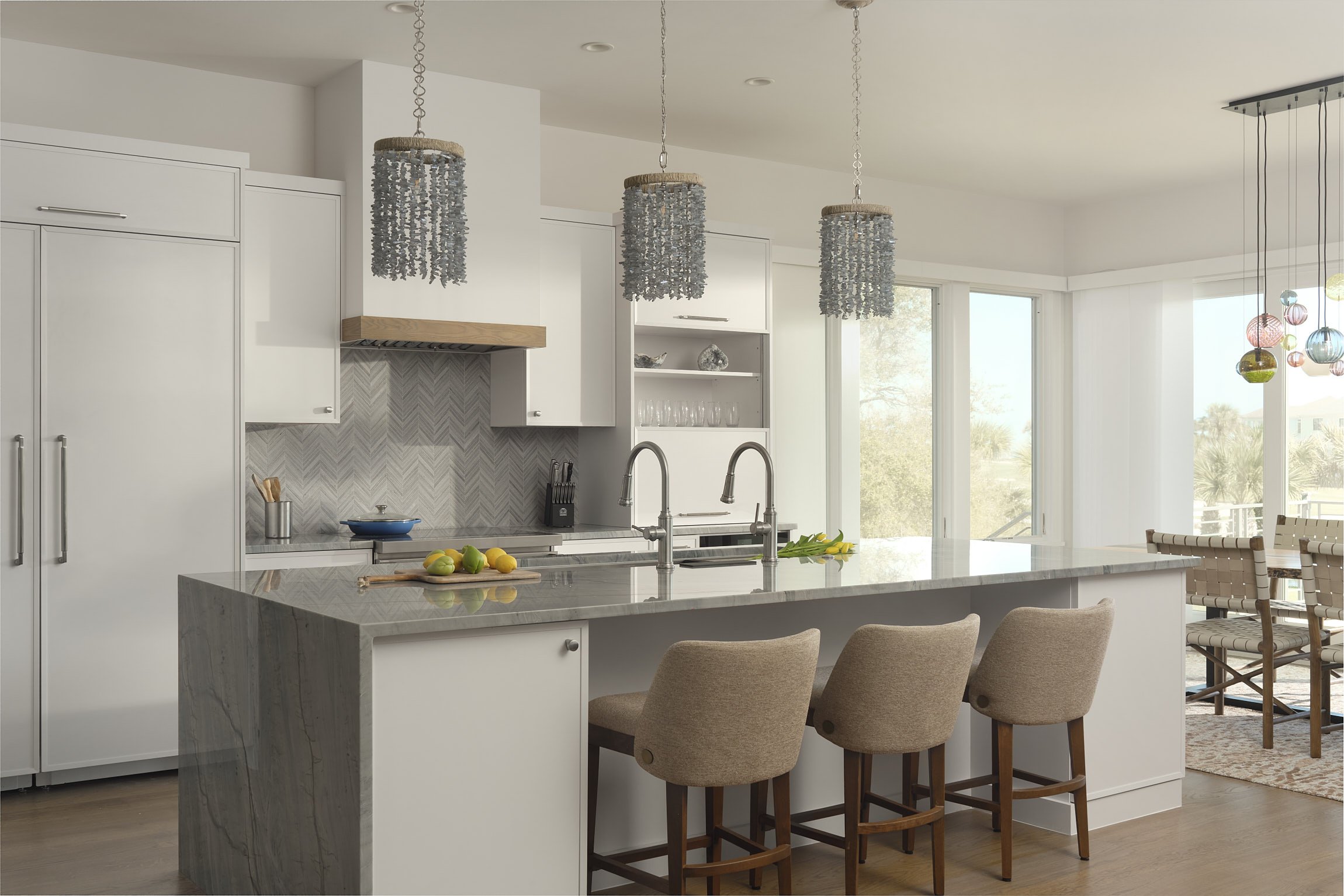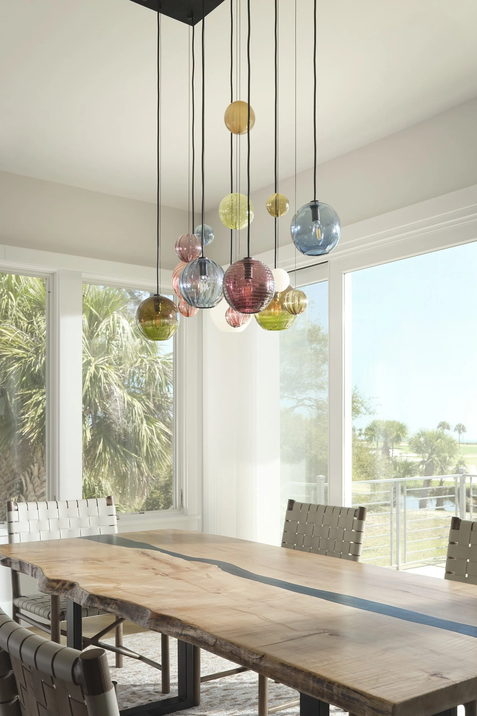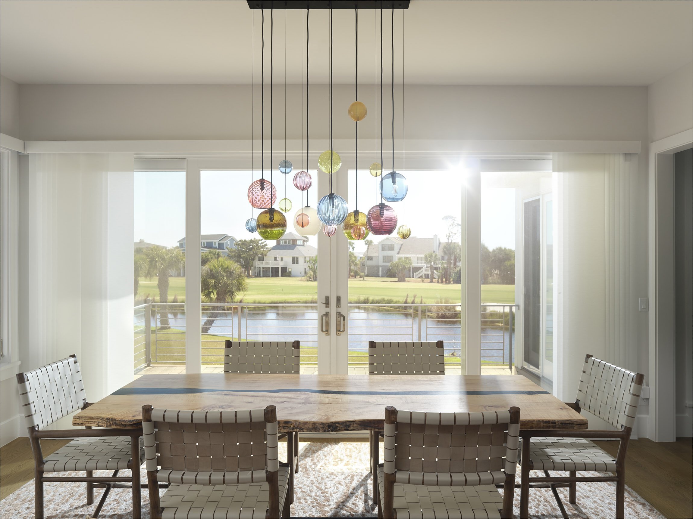 After…the gorgeous colored glass globe chandelier by Tracy Glover Studio invites playful sophisication into the dining room. The sunlight reflections on the globes is stunning!
