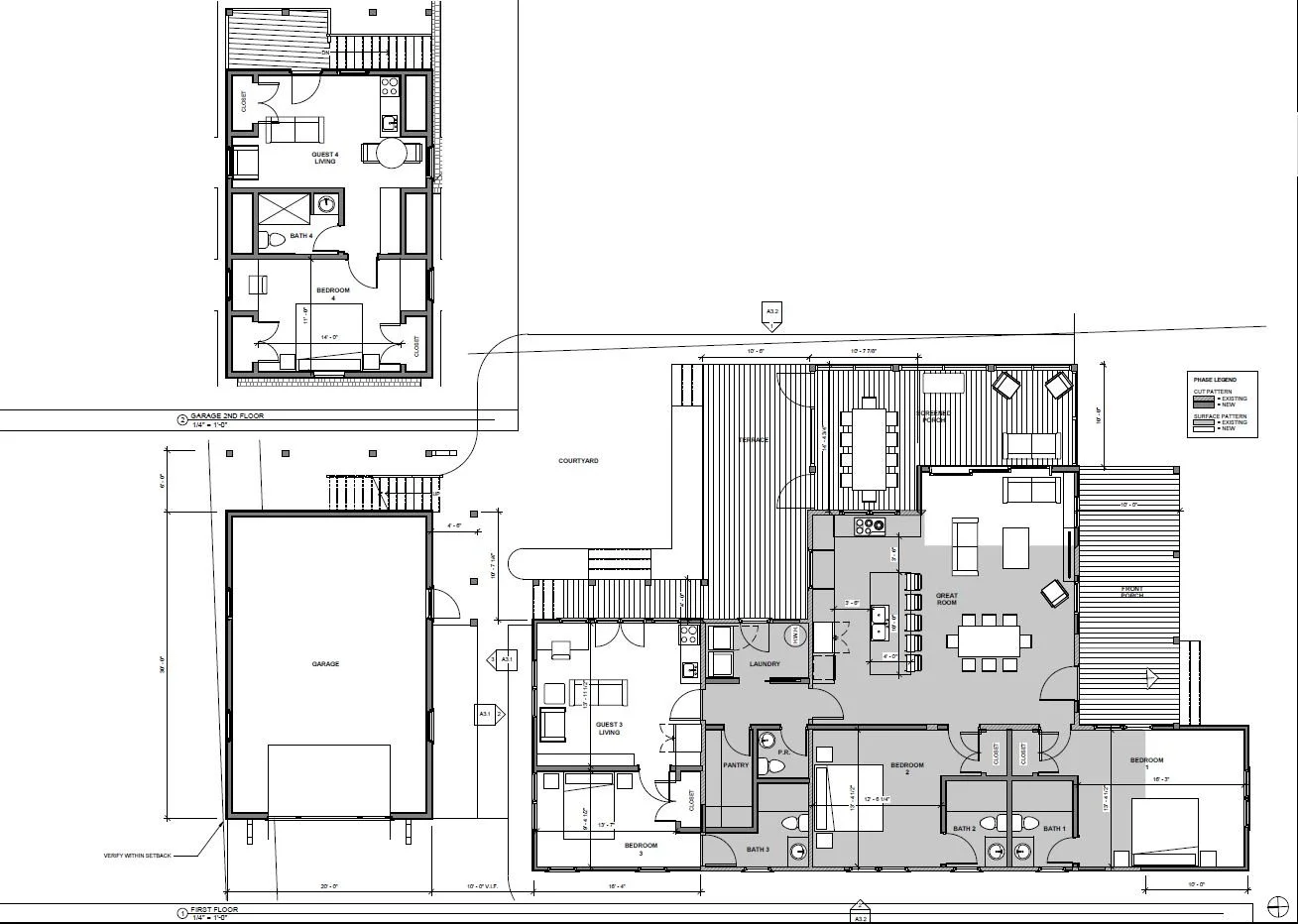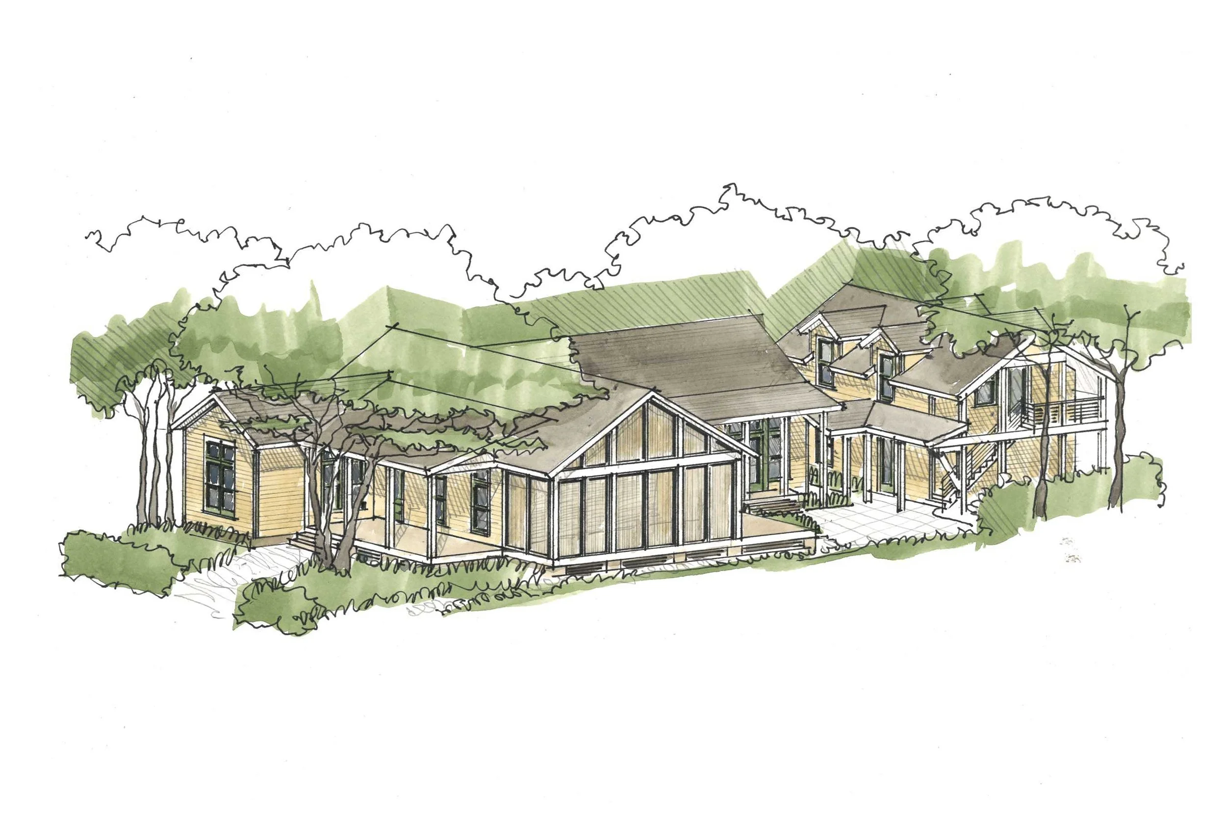 The new plan includes additions on the front and back of the house and a new garage with two bedrooms above. The existing spaces will be reconfigured to open the kitchen to the living and dining areas, add laundry and pantry space, new bathrooms for each bedroom, new finishes and fixtures. Outside, we will add a front porch, redo & expand the screen porch to add room for outdoor dining, and add a terrace overlooking a garden courtyard. The update of this house will contribute to the vibrancy of our beloved hometown.